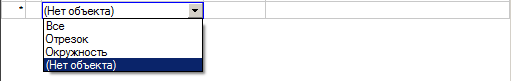 "Объект" - оботражает объекты и их параметры. Если выбрана область поиска "Во всем документе" или "В текущем листе" необходимо добавить объекты самостоятельно. В колонке "Объект" из раскрывающегося списка ячейки необходимо выбрать нужный тип объекта. Чтобы отказаться от выбора или убрать объект из таблицы, необходимо выбрать значение "-Нет объекта-".
